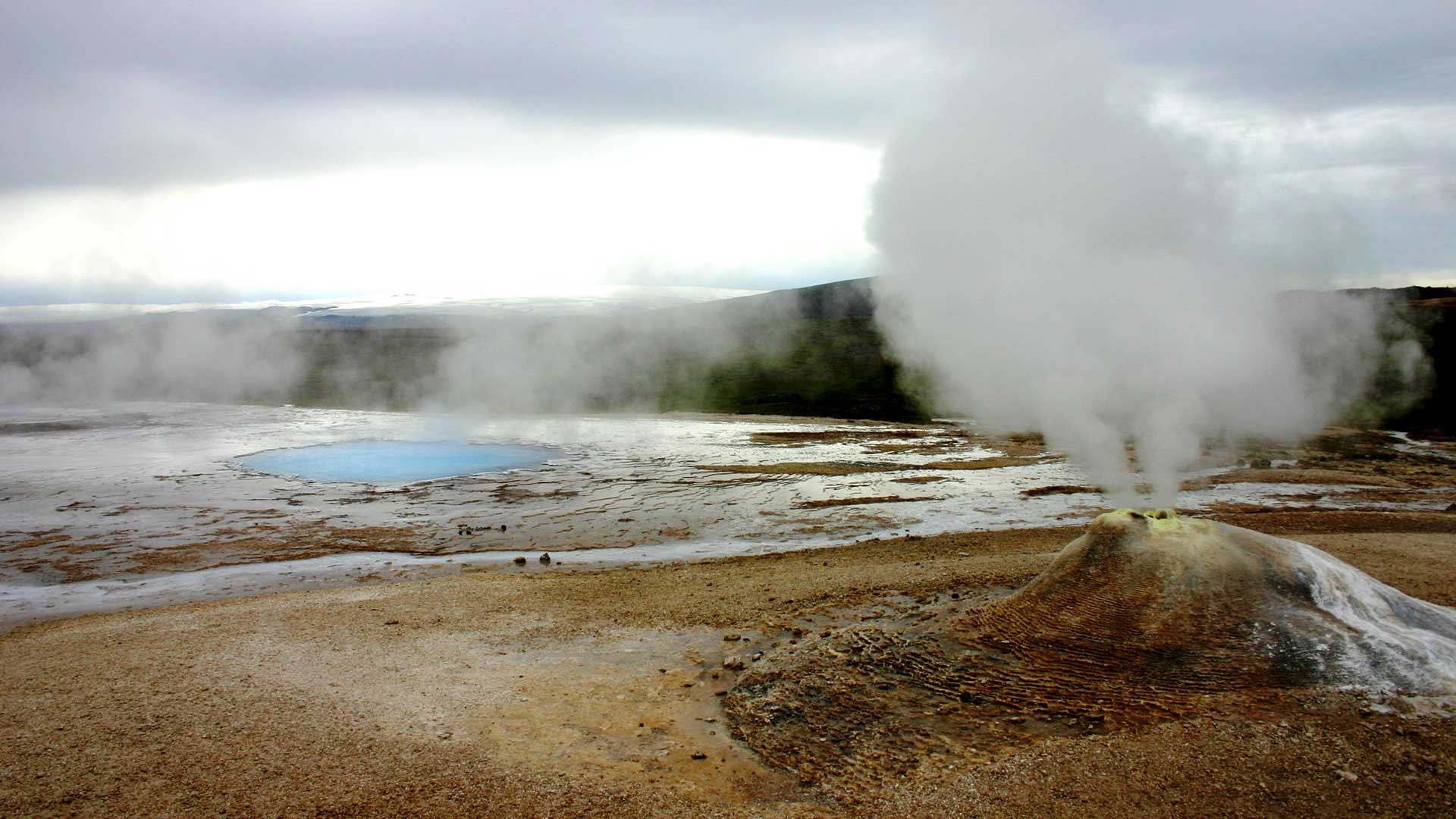 Hveravellir or ‘hot spring plains’ is an unspoiled geothermal area to the north of Kjalhraun, and one of the best-known geothermal areas in Iceland. Located between two glaciers, Langjökull and Hofsjökull, the hot springs, pools, glaciers and magnificent views draw tourists from all over, though it is only accessible in a 4x4 vehicle.