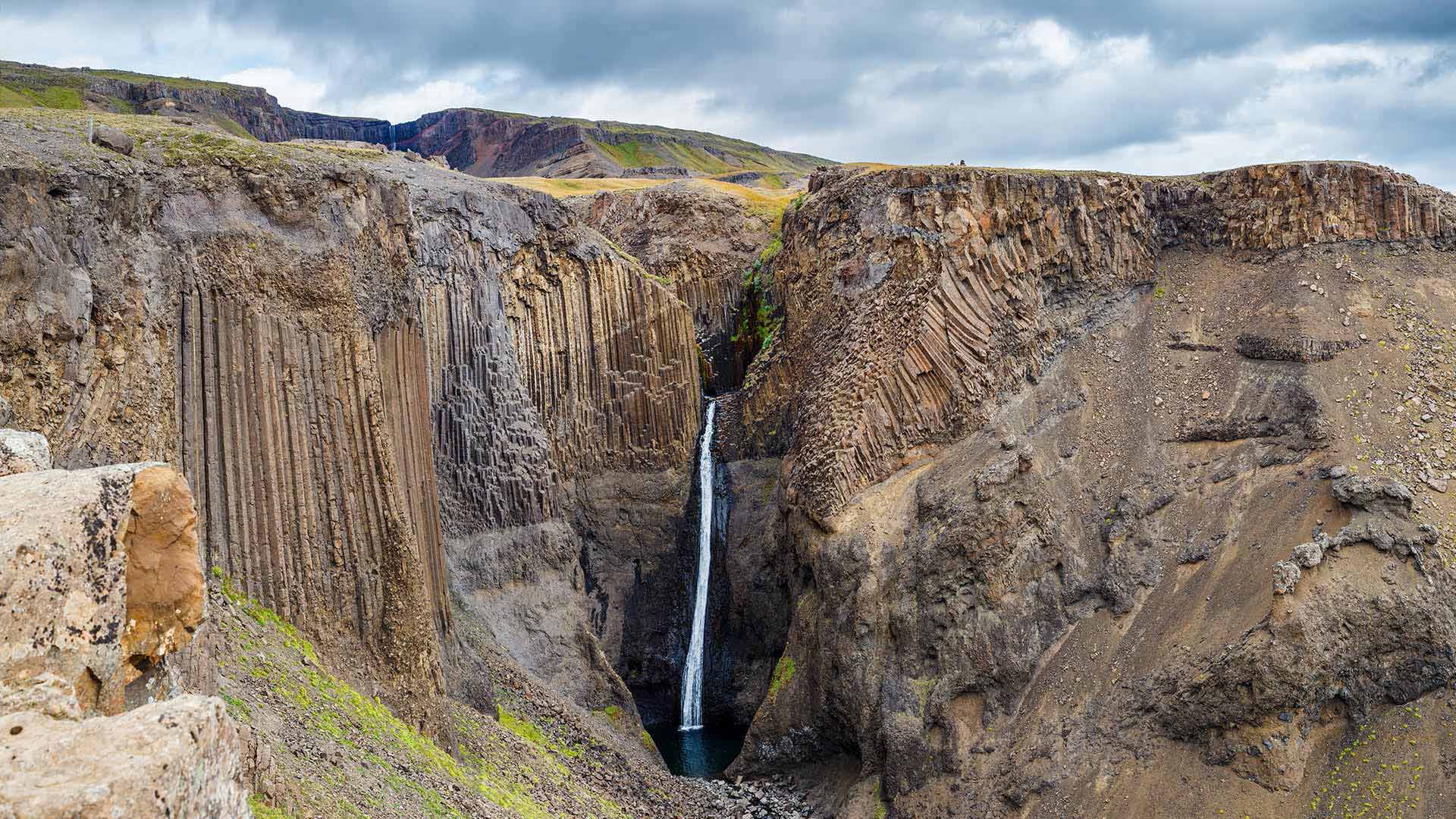 The Hengifossá river feeds two dramatic waterfalls, one of which, Hengifoss, is among the highest in the country at 128 metres (420 feet). This spectacular waterfall cascades into a dramatic gorge and is easy to access from the main road. Below Hengifoss is a smaller waterfall, Litlanesfoss, which is remarkable for its columnar basalt setting. Both are well worth a visit.
