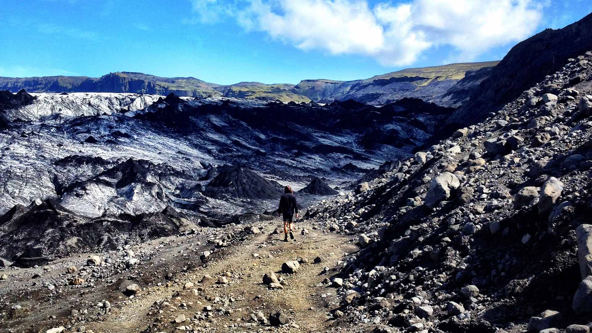 The Sólheimajökull outlet glacier is the most popular and accessible part of Mýrdalsjökull. This stunning frozen cascade of ancient ice is easily reached from the main coastal road (Route 1), just a short drive from the village of Vík.