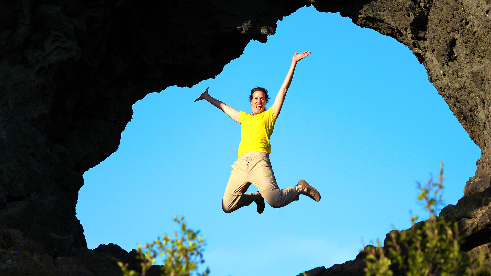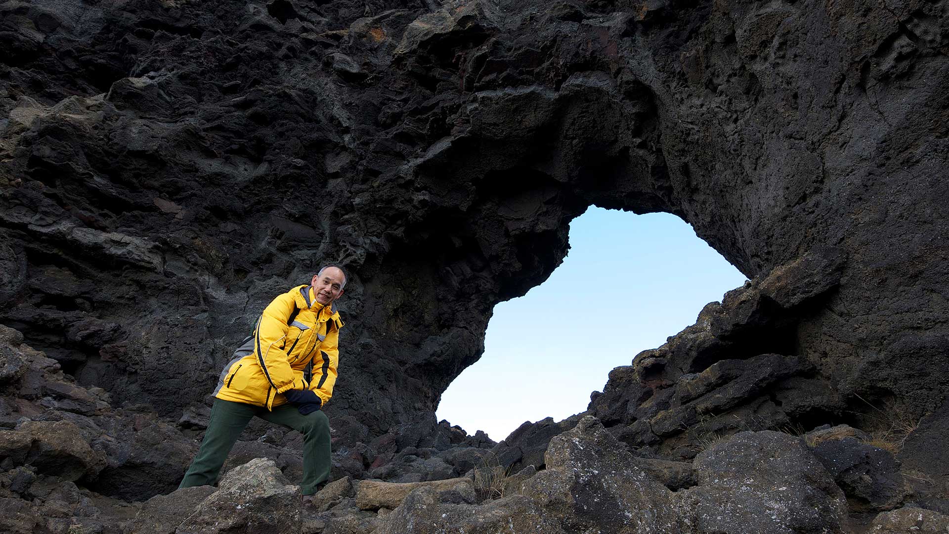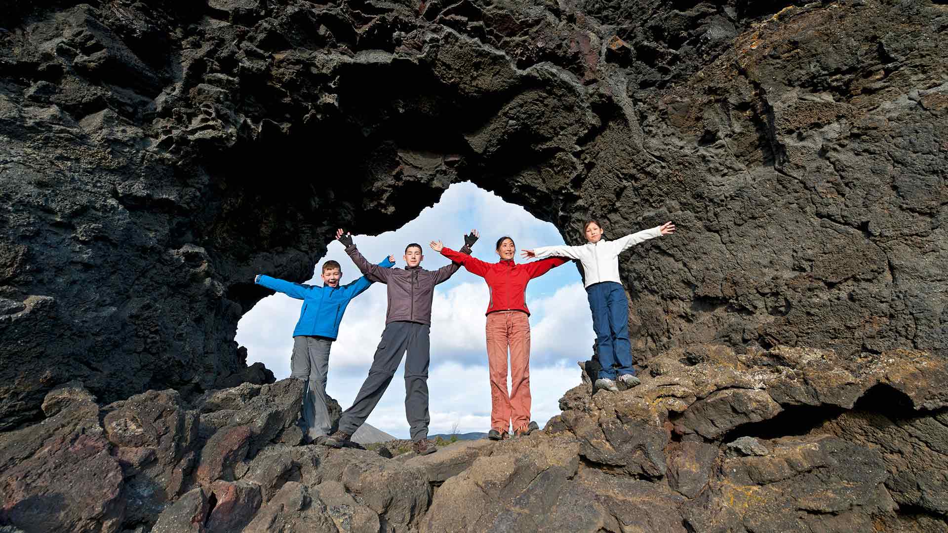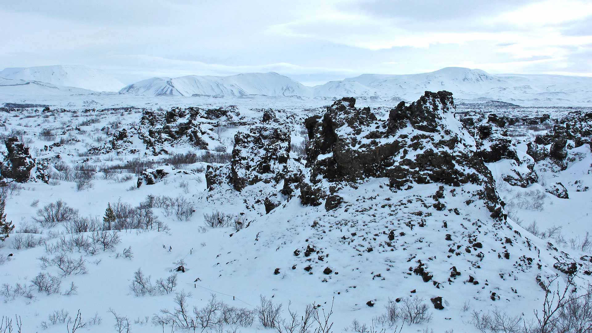 The natural stone labyrinth of Dimmuborgir is located to the east of Lake Mývatn. It is composed of several rock formations and caves, the best known of which is probably Kirkjan, the ‘Church’.