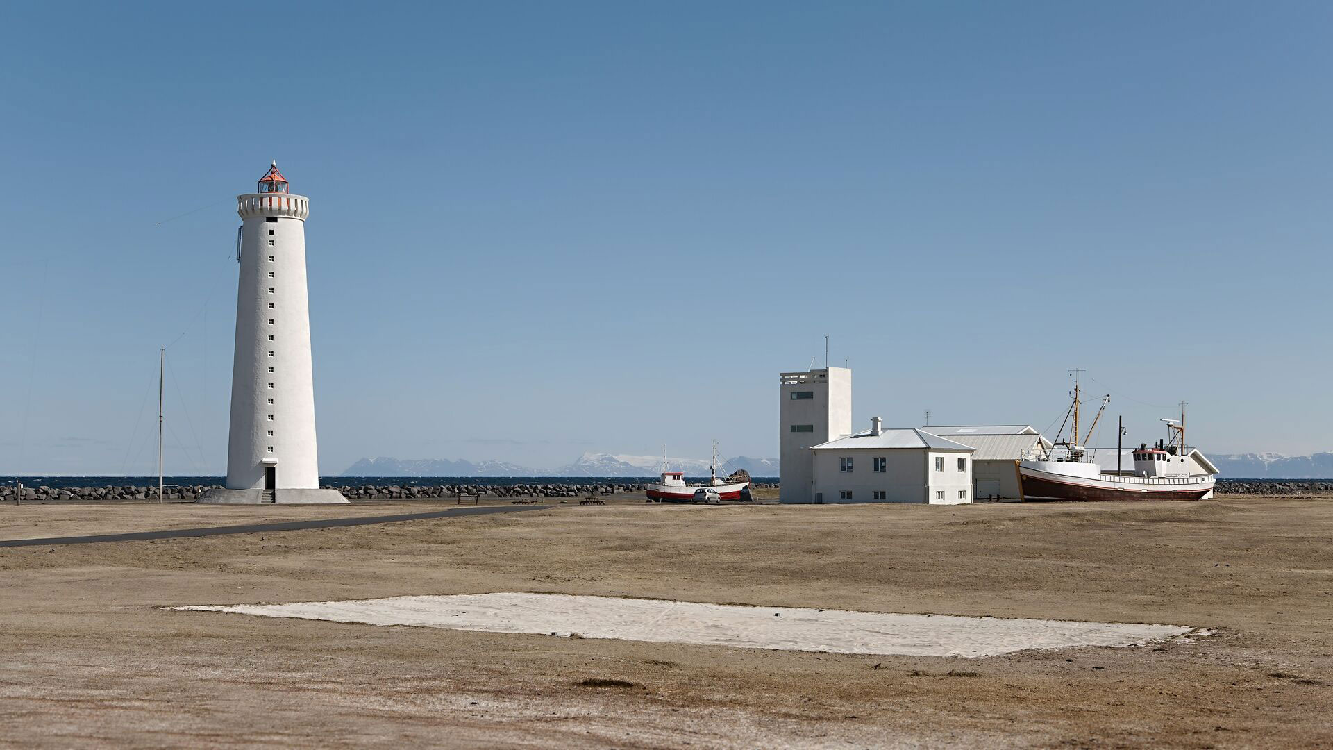 Also on Garðskagi, you can find two lighthouses. The older one, and also the smaller of the two, was once regarded as one of the best lighthouses in Iceland because it stood low-- therefore mist did not pose a problem. Although, there was the risk of the lighthouse being damaged because of the strong surf, and it was sometimes not visible because of storms at sea. The lighthouses are a popular destination to stop and take a photo.