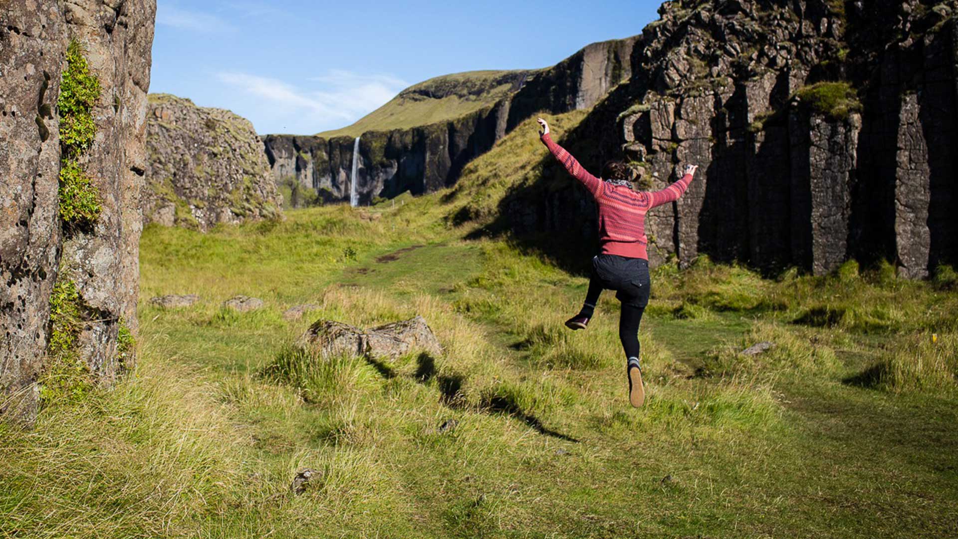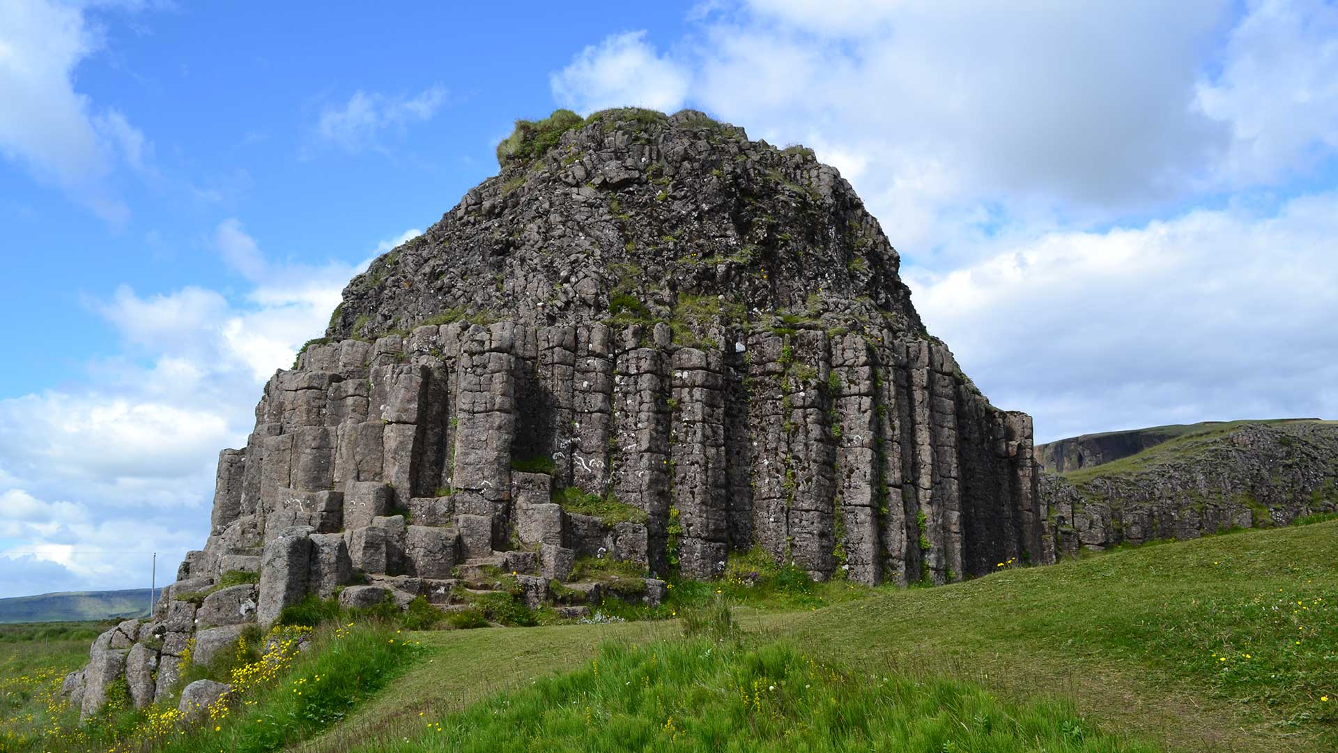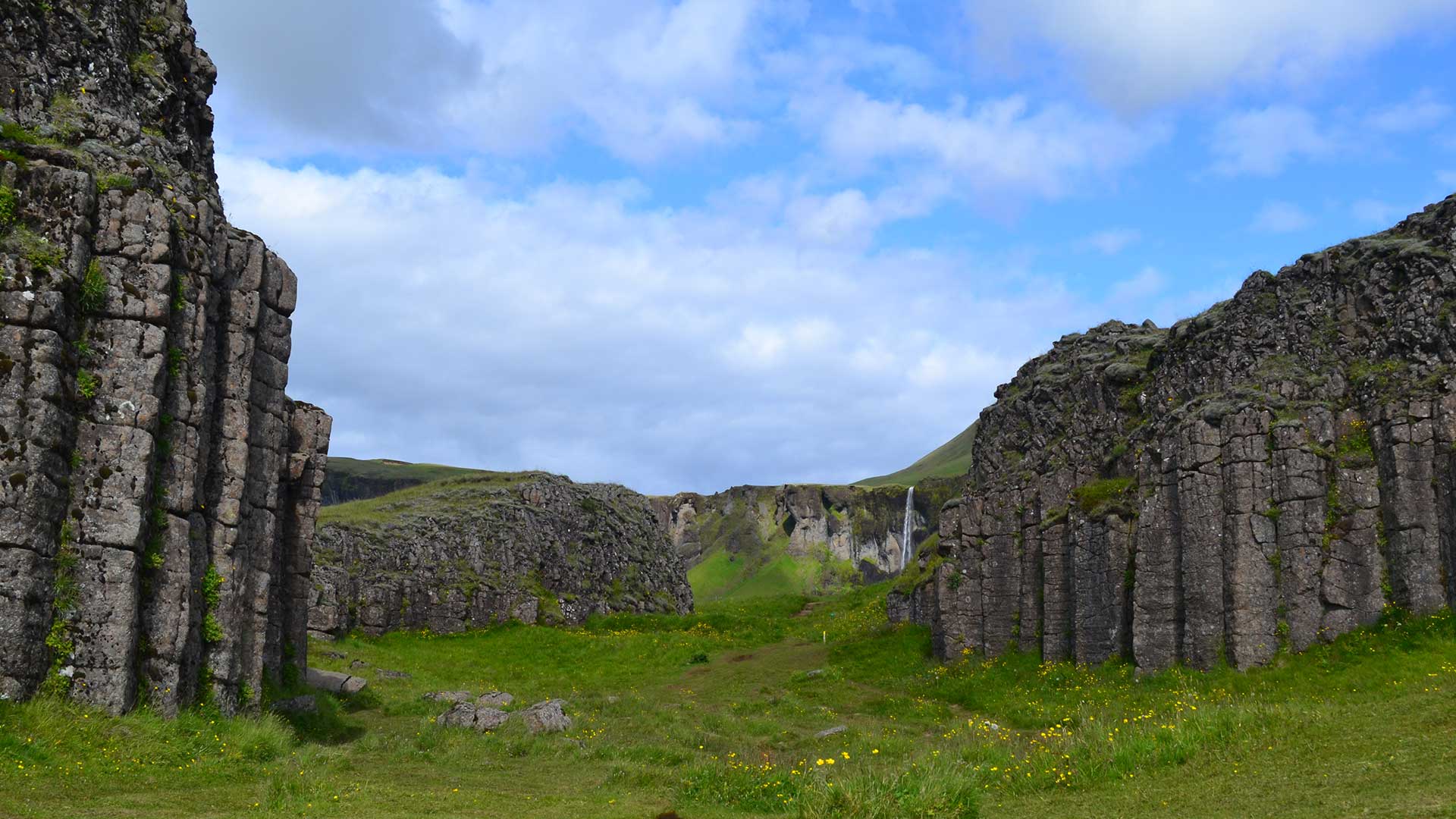 Dverghamrar, or “Dwarf Cliffs”, is a small yet impressive canyon full of unusual, hexagonal basalt columns. Located east of Kirkjubæjarklaustur just off the south side of Route 1, the rock formations are thought to have been shaped toward the end of the last ice age, when the sea level was higher around Iceland and strong waves were battering the rock.