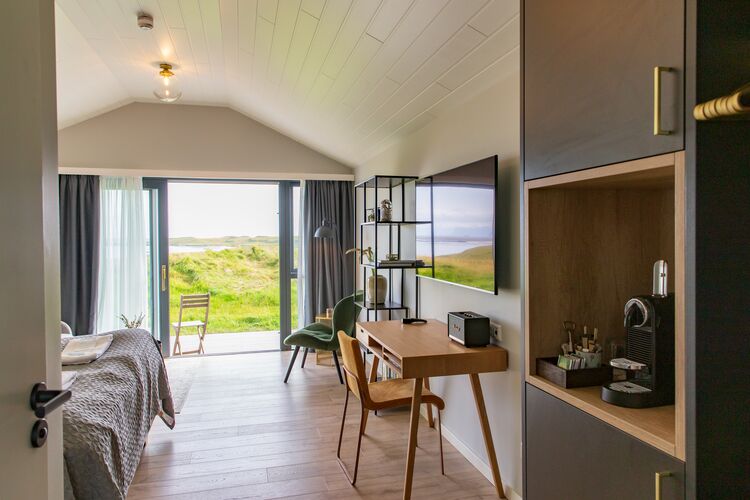 In the turfhouse rooms, you can expect modern amenities and Nordic charm, with everything you need for a comfortable stay.