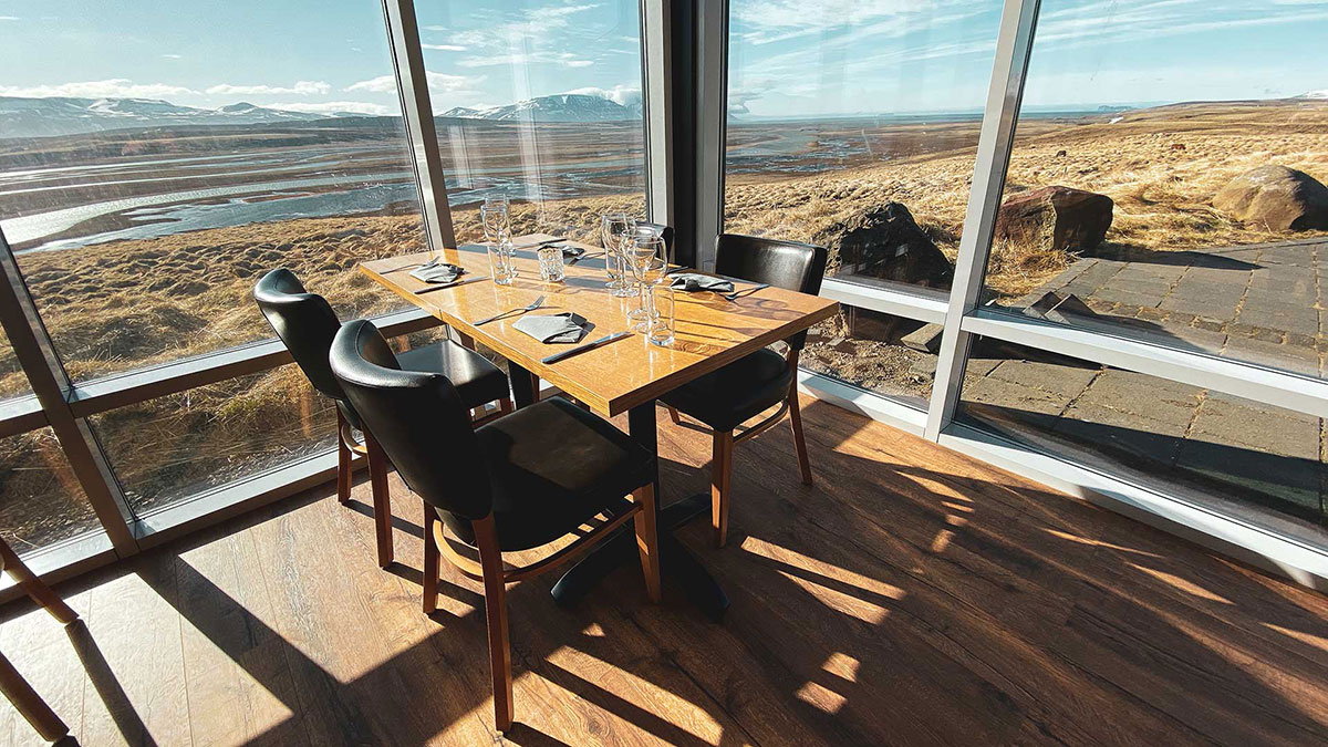 The hotel restaurant serves local produce and ingredients to highlight the bounty of the region. From the restaurant, you can also take in the panoramic view of the Héraðsvötn river and nearby fjord.