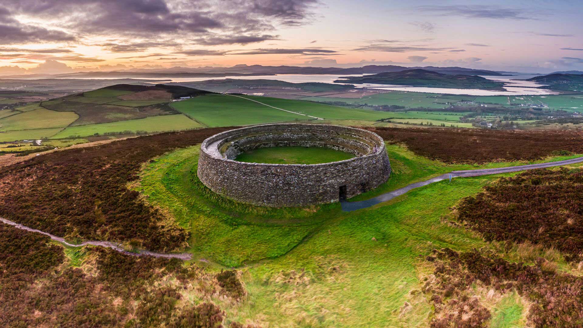 Just outside of Derry, in Donegal, you’ll find Grianán of Aileach. This is a hill fort and one of Inishowen’s most famous historical monuments. The name is sometimes anglicised as Greenan Ely or Greenan Fort.