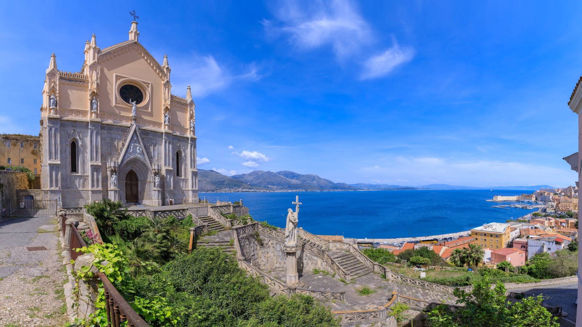 The old town sits along Monte Orlando, a headland that juts proudly into the Tyrrhenian Sea. Medieval towers watch over narrow alleys, the smell of slow-cooked ragù drifting from open windows. The Santuario della Santissima Annunziata gleams with golden baroque excess, while the stone-clad castle, Castello Angioino-Aragonese, has guarded the harbour since the 6th century.