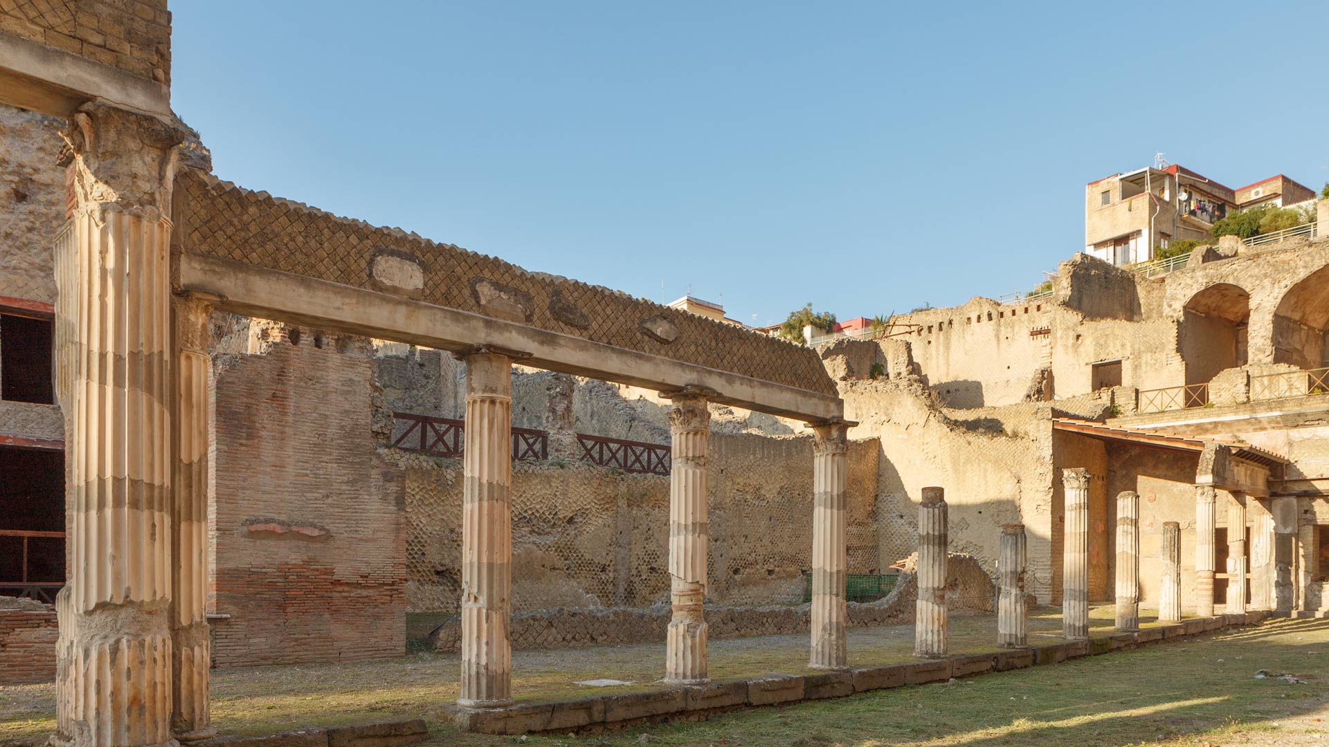 Like Pompeii, Herculaneum was built as a coastal town. But now, the sea has receded, pushing the town inland. You can find it close to the centre of the Naples coast, about half an hour from Naples by train.