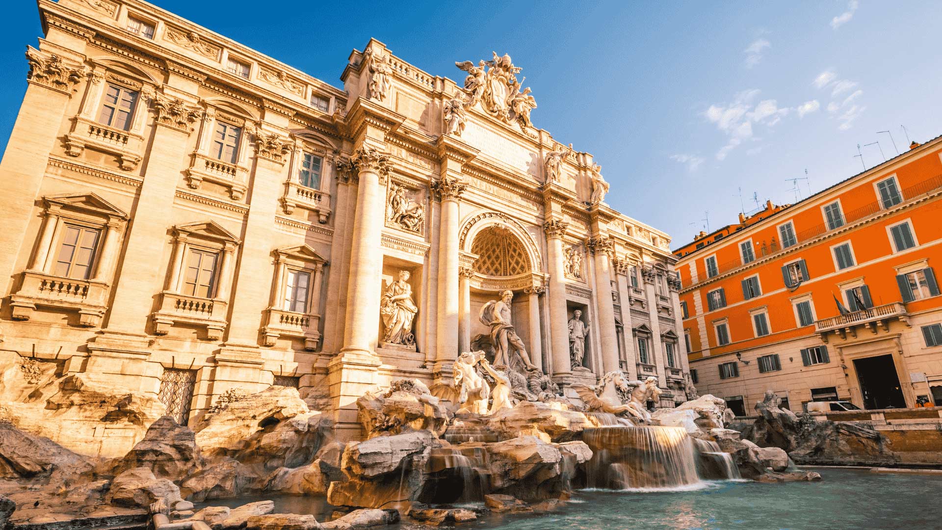 Forged from white travertine stone. Shadowed by the striking Palazzo Poli. The Trevi Fountain is one of Rome’s most recognisable landmarks. Stand before its baroque form and soak in the magic.