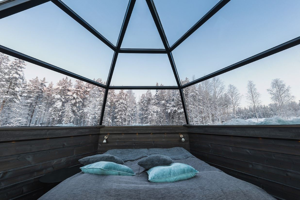 Included in your package is a stay in a glass igloo at the Arctic SnowHotel, use of the traditional Finnish sauna, a 3-course dinner and breakfast. The SnowHotel offers a northern lights wake-up call service at your glass igloo if you want.