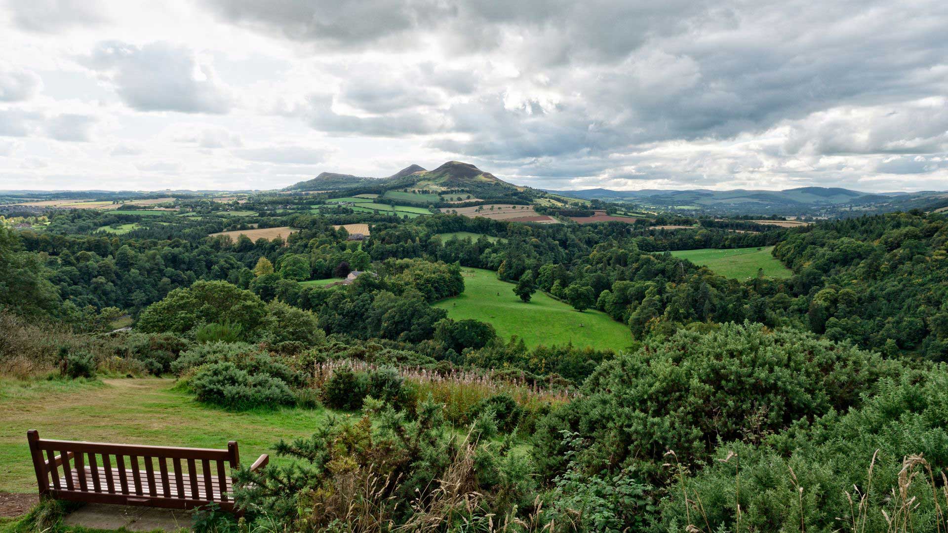 Scott's View is a scenic viewpoint overlooking the Tweed Valley in the Scottish Borders region. It is said to have been one of the favourite views of Sir Walter Scott, the famous Scottish novelist and poet. From this hilltop location, the scenery includes rolling farmlands, woodlands and the three peaks of the Eildon Hills.