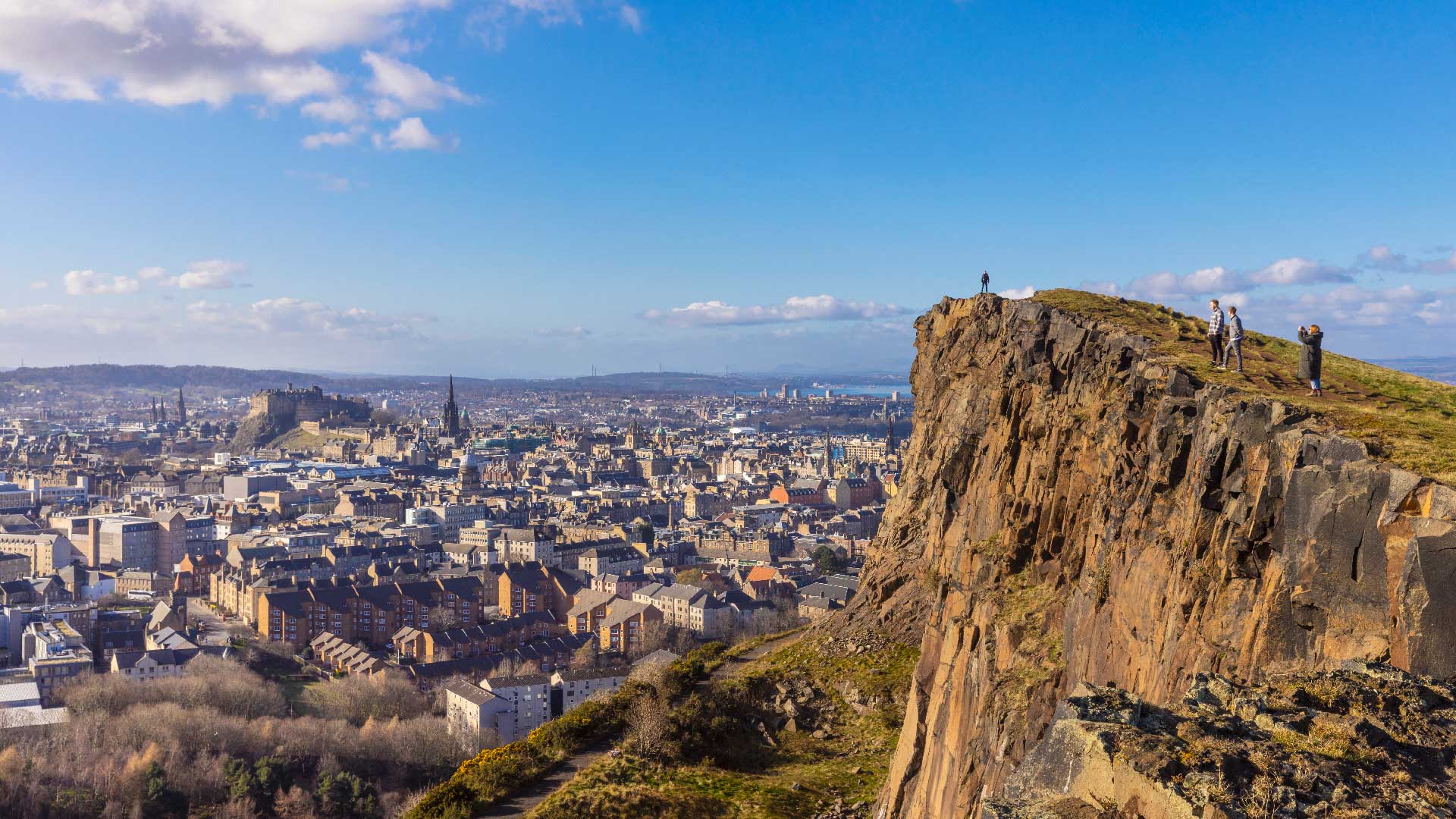 Arthur’s Seat is the main peak of Edinburgh’s landmark hills, which form the majority of Holyrood Park. The hills are located just 1 mile (1.6 km) to the east of Edinburgh Castle and rise above the city at 822 feet (250 m) tall. The peak is popular with hillwalkers and is easily accessible from all sides. In Scottish mythology, Arthur’s Seat is often mentioned as the possible location of Camelot.